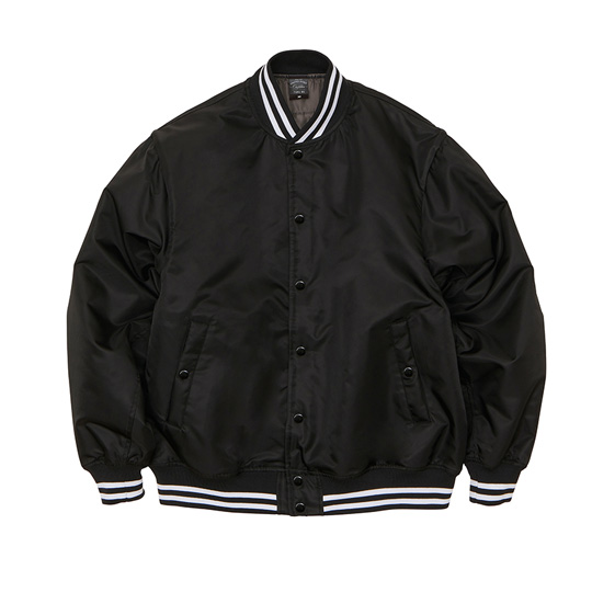 ポリ100%の布帛生地のためシャカシャカせず、しなやかで軽い素材に加えてラグラン袖で動きやすいのが特徴。Vネックの衿元はフライス編み、袖口・裾口は伸び縮みテープで着脱しやすくなっています。